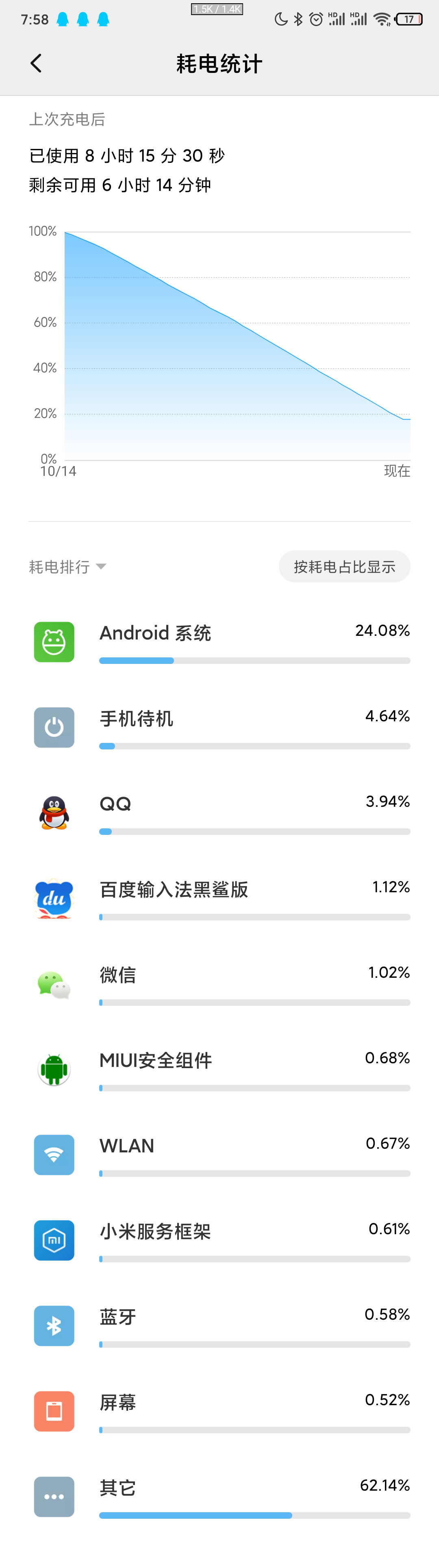 Mi_2240027263 发表于 2020-10-15 20:57 好家伙。我待机一夜大概2%的电。你这系统版本有点儿流批