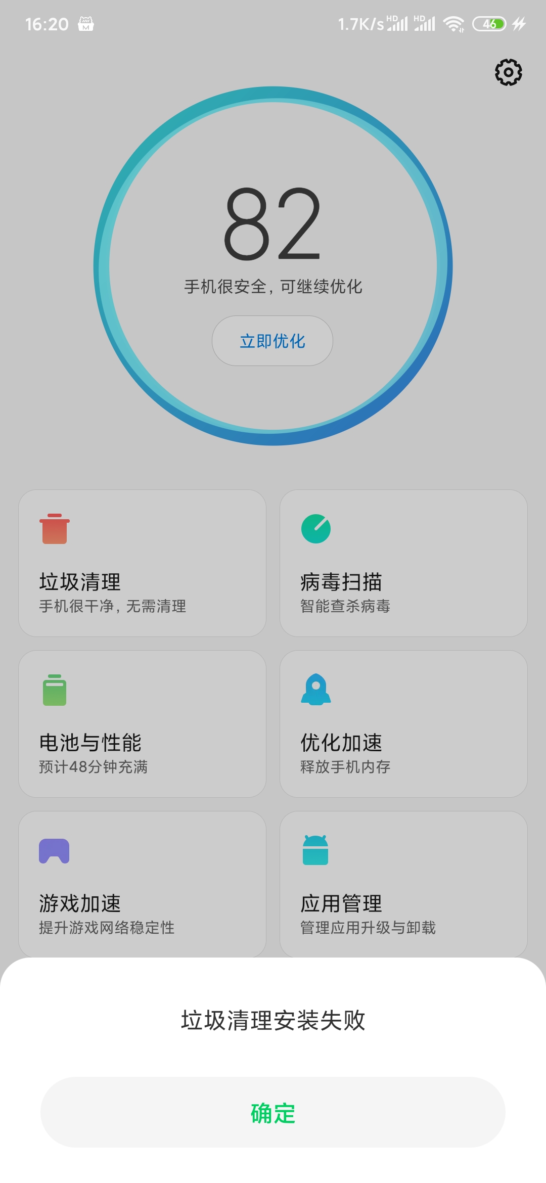 安装游戏,需要把MIUI优化关了,之后Lj清理就没了,需要再次安装,但是一直安装失败(MIUI优化开或关再安装也没用)