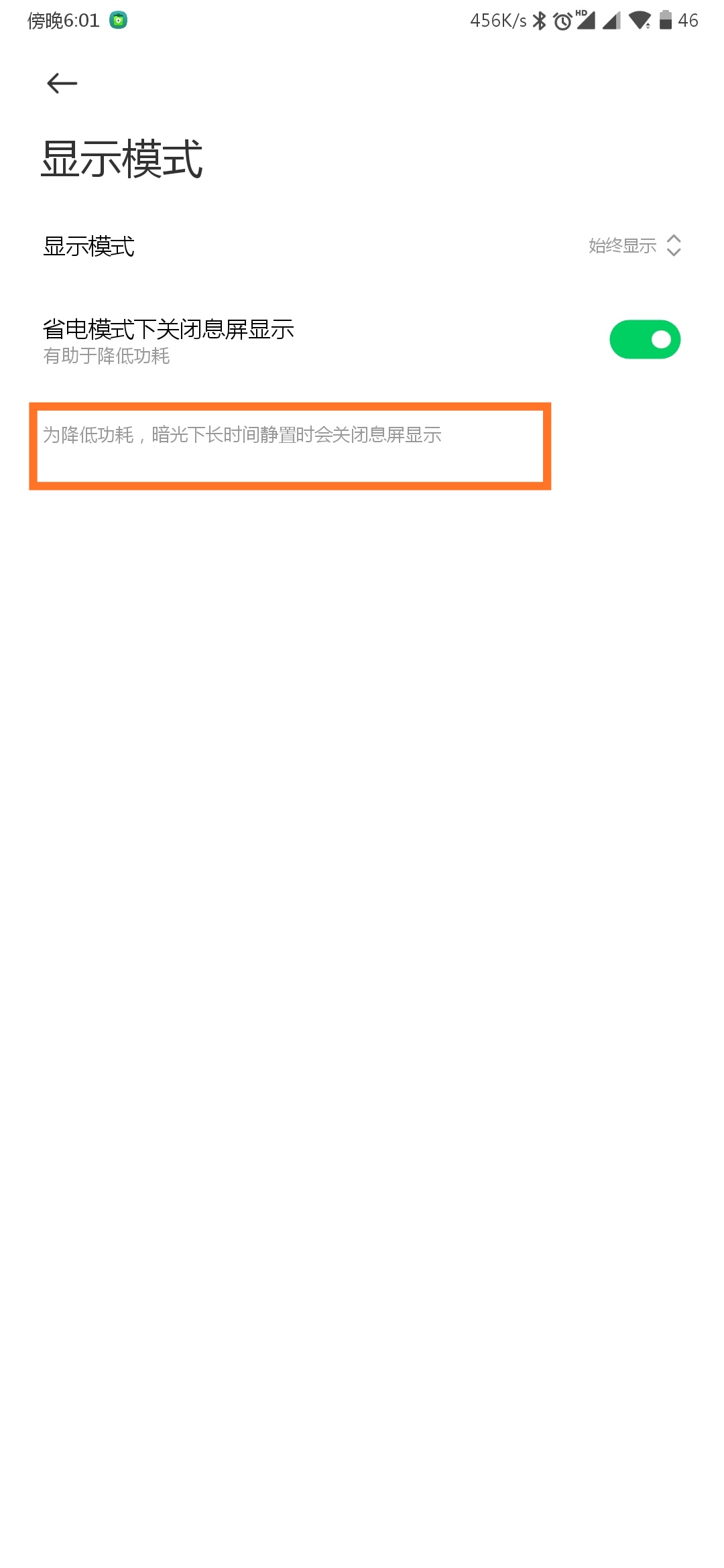 这个功能好像一直无效,你们的呢?息屏显示开启后真的很费电