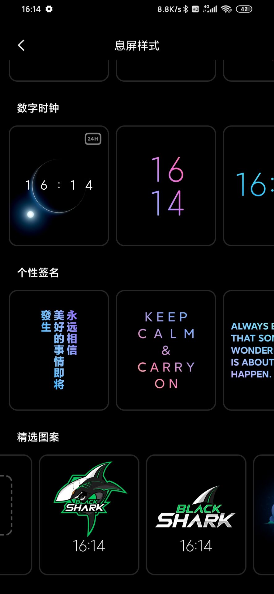 老哥,我的熄屏显示里面,精选图案里面没有你的这前两个图案了。。。就是鲨鱼图案和黑鲨产值图案。。。