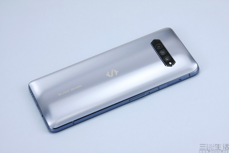 正如大家所见,这就是全新的黑鲨4系列游戏手机了。很显然,相比此前的黑鲨游戏手机产品,最新一代机型在后壳造型上发生了极大的改变,那些复杂的拼接曲面全部消失不见,取而代之的则是一整块的曲面玻璃。而上代机型中夸张的三角形多摄组件,如今也已经被平实的横置三摄所取代。虽然从摄像头饰板两端的外观设计上,我们还是能看出家族式的X型元素,但很明显,新的造型“低调”了不少。