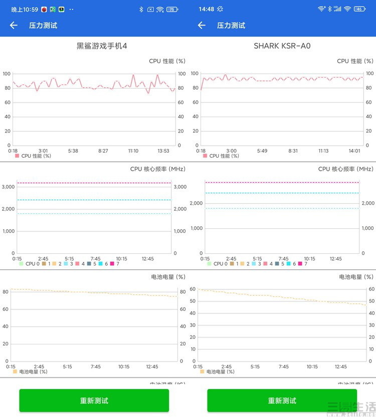 黑鲨4与黑鲨4 Pro在安兔兔的压力测试中均未有任何降频