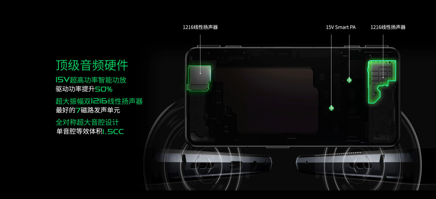 除了出色的屏幕显示之外,音频体验也一骑绝尘。被誉为“音乐手机”的小米 10 的对称式扬声器受到用户的广泛认同,再次推出的小米 10S 同样继承优秀的外放效果,夺得 DXO 音频榜第一。不过仅仅维持几天之后,黑鲨 4 以更出色的外放效果称霸音频榜单第一。硬件上,得益于游戏手机更大的机身设计,黑鲨 4Pro 使用 1.55cc 超大音腔,并且是全对称式的双扬声器设计,“音乐游戏手机”名副其实。