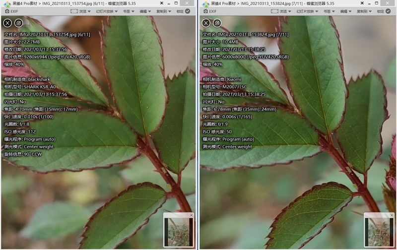 这一张黑鲨4 Pro在叶子的纹理上输给了小米10至尊版。