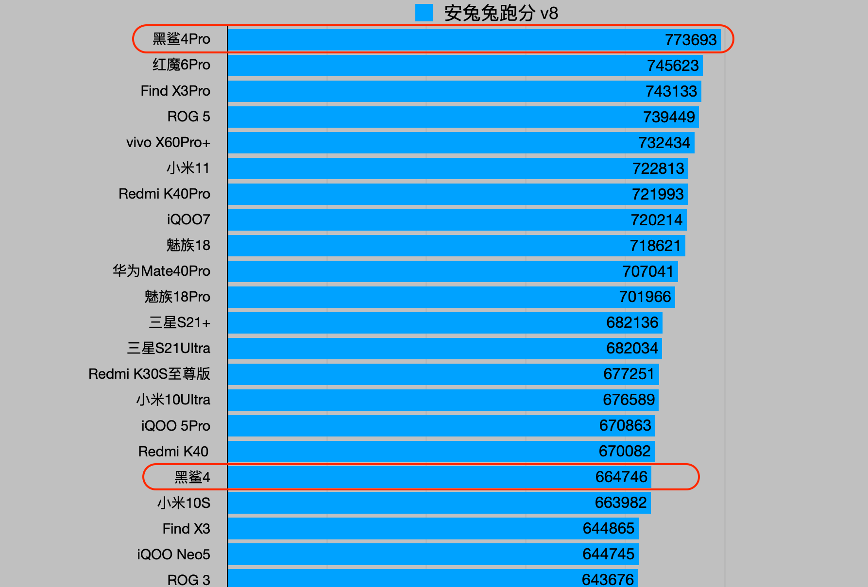 这两款手机的跑分成绩也非常出色,在安兔兔软件上,标准版的跑分达到了66万分左右, Pro版本更是取得了77万分的成绩,远超其他骁龙888处理器的手机跑分。 外观设计上,两款机型都采用了居中打孔折屏设计,孔径大小为2.76mm,与红米K40系列的挖孔尺寸大小一致。不过黑鲨4标准版厚度达到了9.9mm,重量为210克, Pro版本为9.9mm重量为220克。