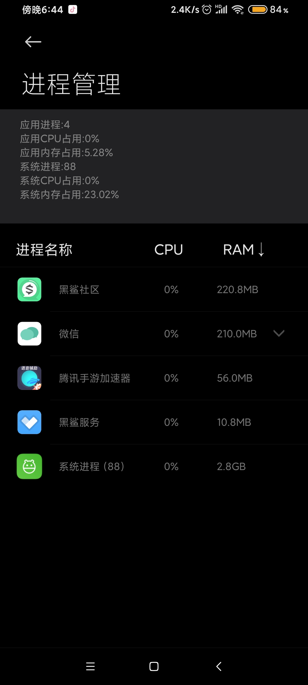 这个一直在变是什么情况,直接70是什么鬼,什么都没开,系统进程88个,3g是什么鬼