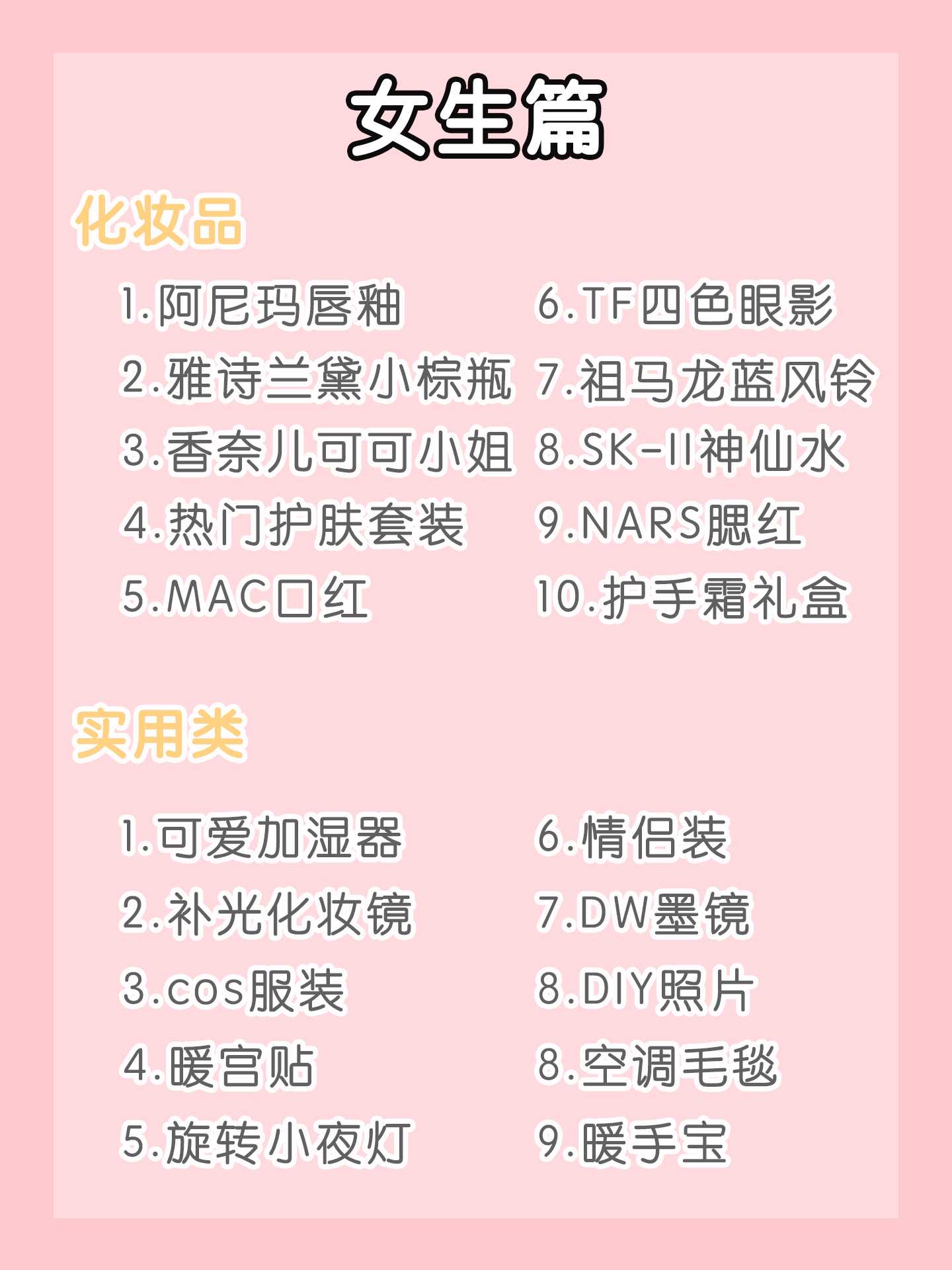 里面有详细列好的分类,相信百分之80的他/她都会感兴趣,他/她不感兴趣你来打我