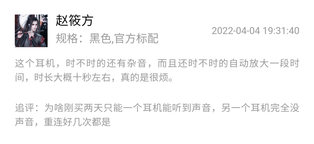 这是黑鲨商城内一个鲨粉对新款降噪耳机的发言